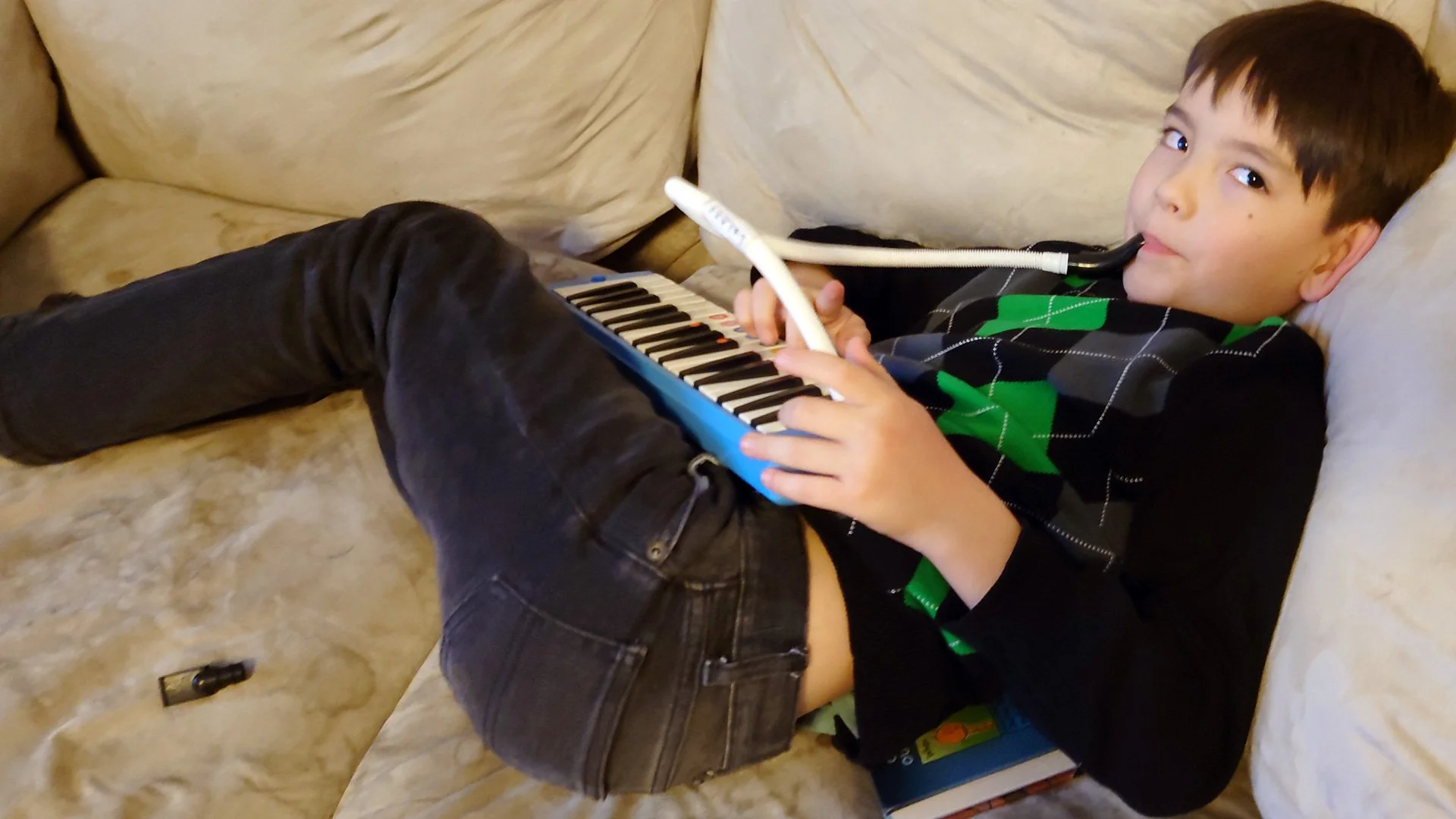 I was nostalgic for my kindergarten jam band, so I dusted off the old Melodion, stretched out on the loveseat and played some laconic harmonics.